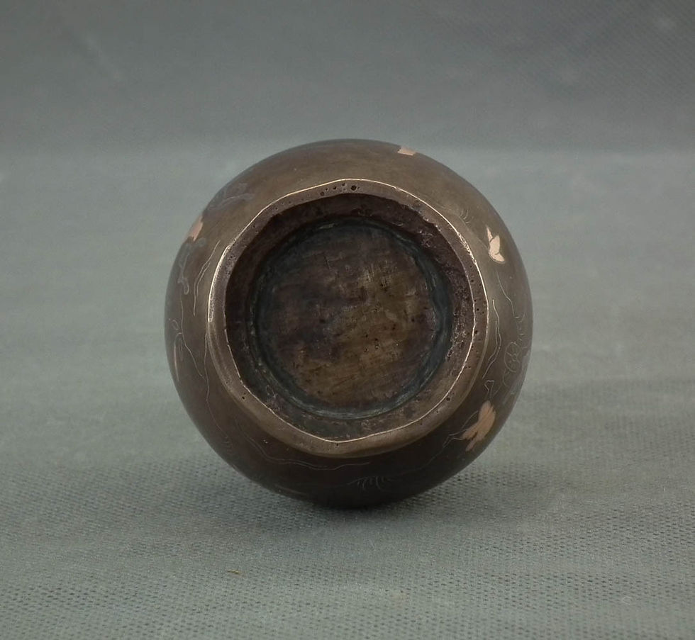 Antique 19th century Vietnamese Silver Inlay Bronze Vase Vietnam Nguyen Dynasty